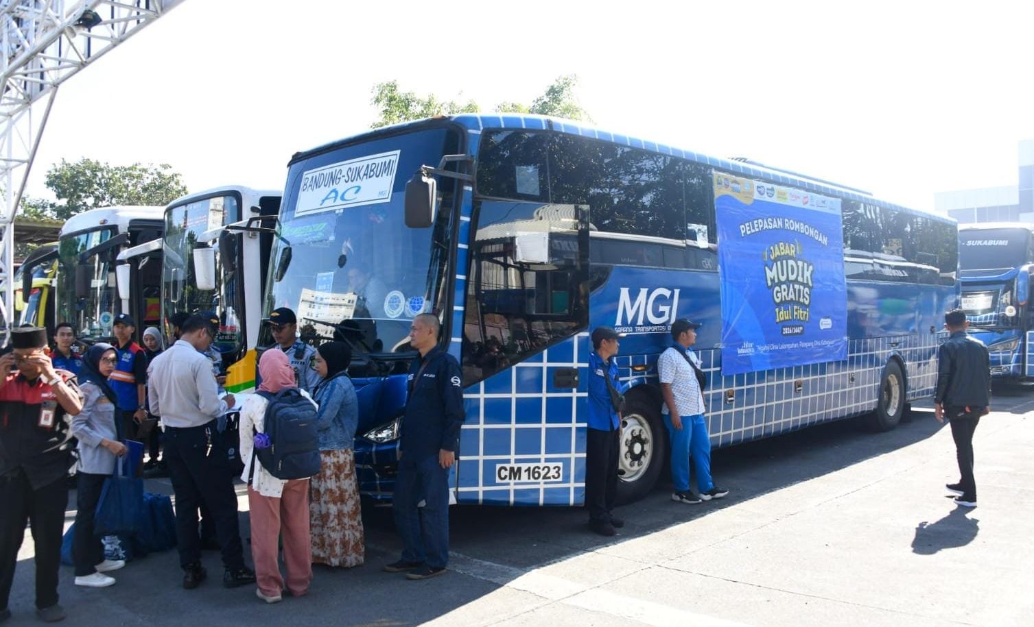 Bandung, MEDIASERUNI.ID – Sebanyak 3000 peserta mudik gratis program Pemprov Jabar dilepas Wagub Erwan Setiawan dari Terminal Leuwipanjang, Bandung, Jumat 13 Maret 2026.