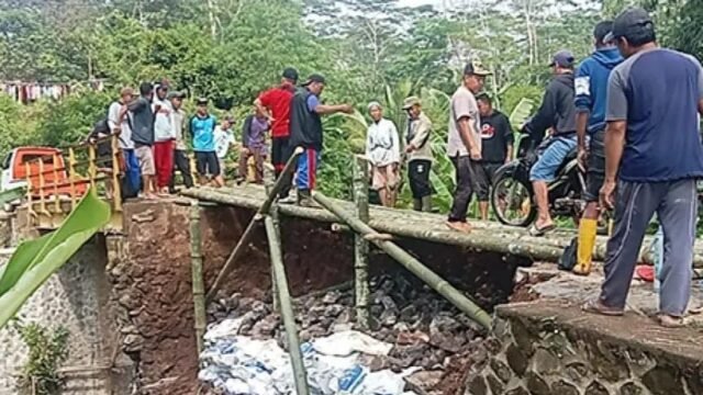 Jembatan Cipicung di Sagaranten Ambruk Setelah Diterjang Longsor
