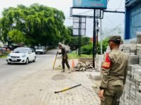 Satpol PP Cabut Tiang Besi Milik Material Pencaplok Jalur Hijau di Kawasan Perumnas Telukjambe
