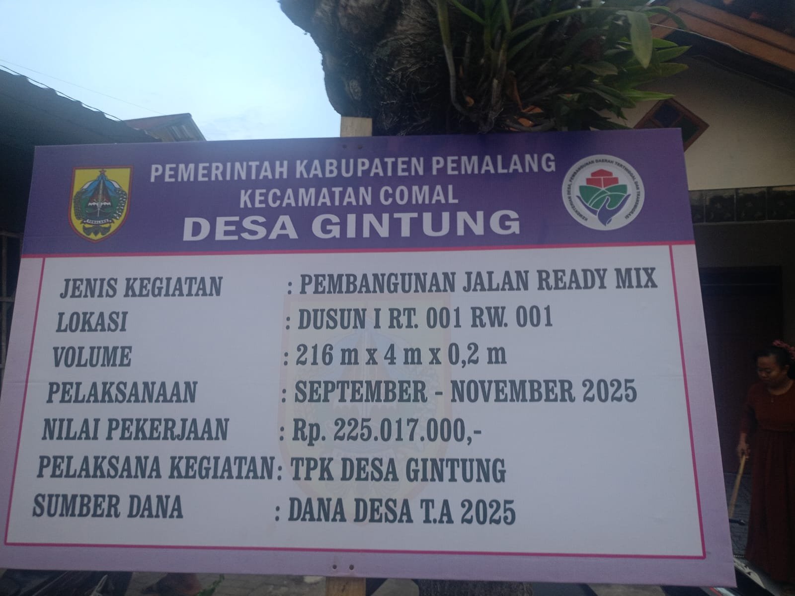 Pemalang, MEDIASERUNI.ID – Proyek rabat beton yang dibiayai Dana Desa Tahun Anggaran 2025 di Desa Gintung, Kecamatan Comal, Kabupaten Pemalang, kini menjadi sorotan tajam. Pasalnya, proyek senilai Rp 225.017.000,- tersebut diduga kuat menyalahi aturan teknis dan mekanisme pengelolaan yang seharusnya mengikuti prinsip transparansi dan swakelola sesuai Permendagri.