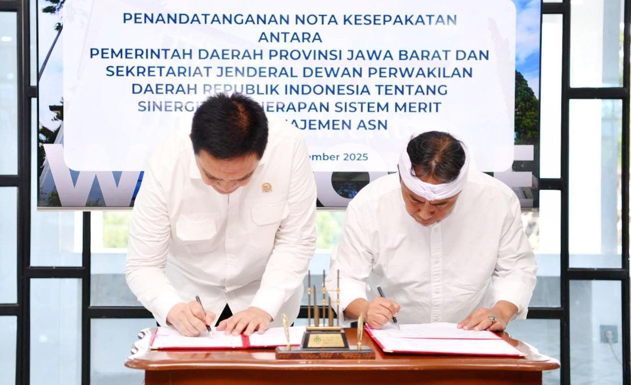 Bandung, MEDIASERUNI.ID – Kesepakatan sinergi penerapan sistem merit dalam manajemen ASN, secara resmi diteken Pemprov Jawa Barat bersama Sekretariat Jenderal DPD RI,di Graha Merit, Bandung, Selasa 16 September 2025.